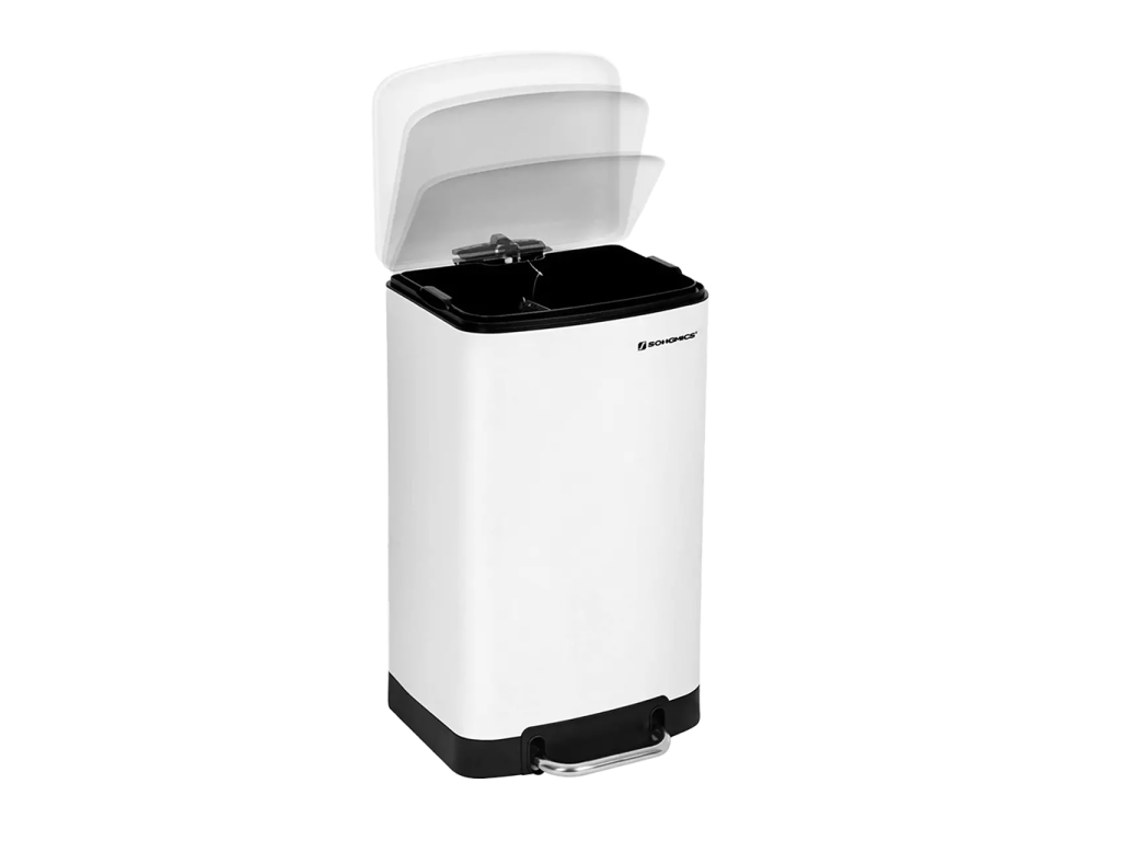 Odpadkový koš o objemu 25l, dva stupně otevření víka 78° a 100°, rozměr 26 x 47 x 34 cm.